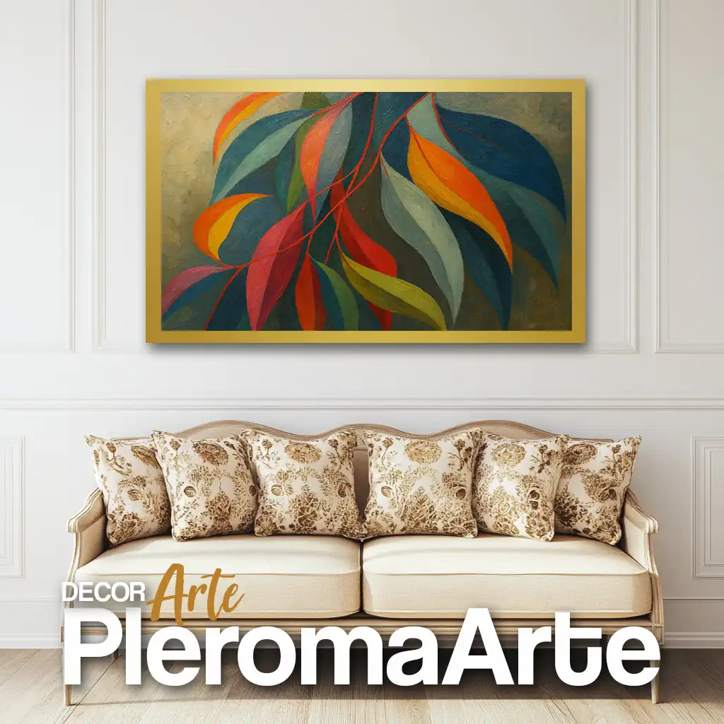 Venta de cuadros Belleza Natural Venta de cuadros Belleza Natural es una obra decorativa que fusiona hojas estilizadas en tonos rojos, verdes, azules y naranjas, transmitiendo vitalidad y armonía. Pintada por artistas profesionales con óleos y acrílicos de alta gama sobre lienzo, incluye marco de cedro de 2 pulgadas en el color que prefieras. Disponible en distintos tamaños, con envío seguro e instalación gratuita en Lima Centro. Plazo de entrega: 10 días.