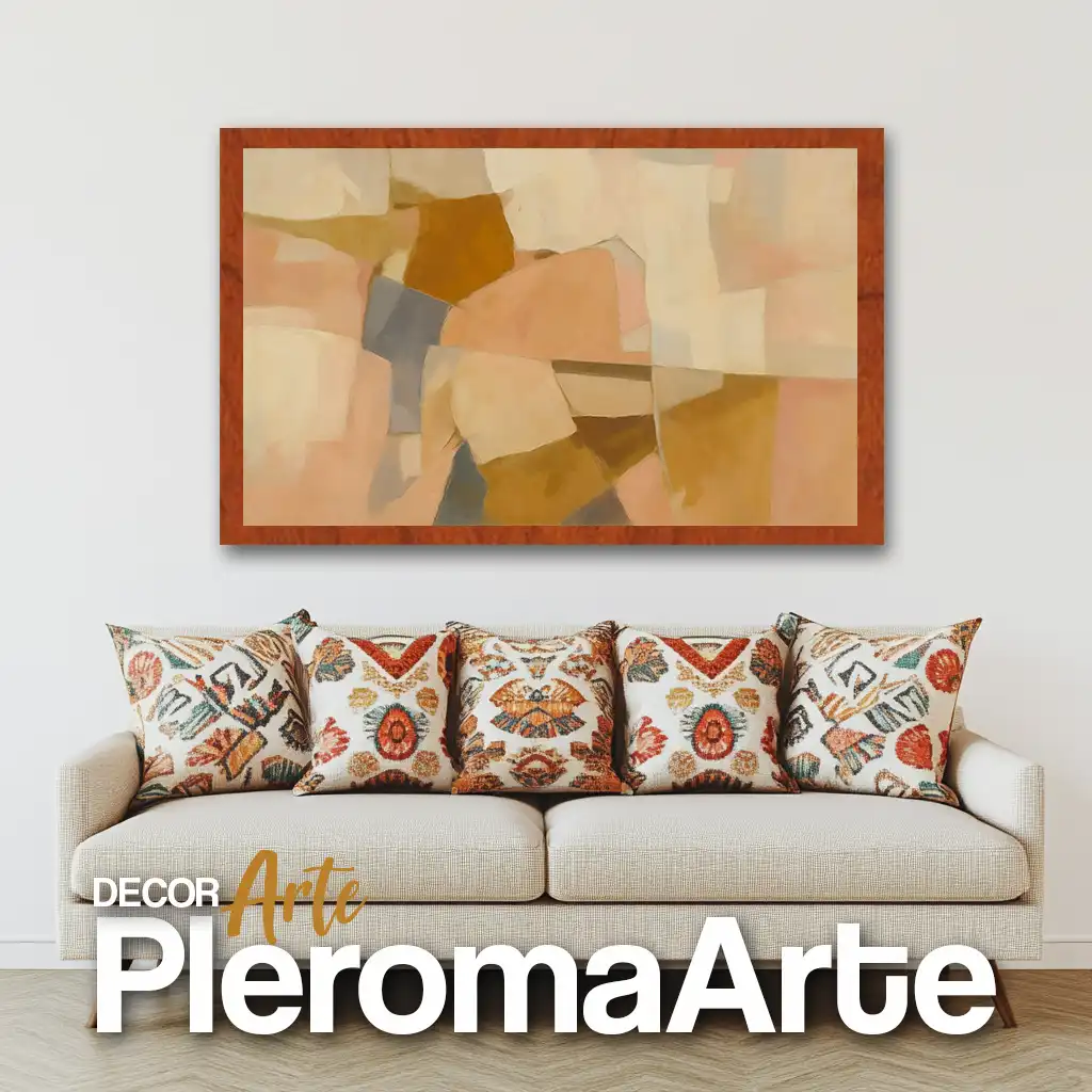 Venta de cuadros Melodía Rosa es una obra abstracta que envuelve con su delicadeza cromática y composición equilibrada. Su gama de tonos beige, terracotas, rosados suaves y matices ocres crea un ambiente cálido y elegante, evocando serenidad y sofisticación. Los planos geométricos se entrelazan como notas musicales, logrando una armonía visual que transmite calma y equilibrio. Ideal para quienes buscan un arte contemporáneo que aporte luminosidad y distinción a la sala, comedor o dormitorio.