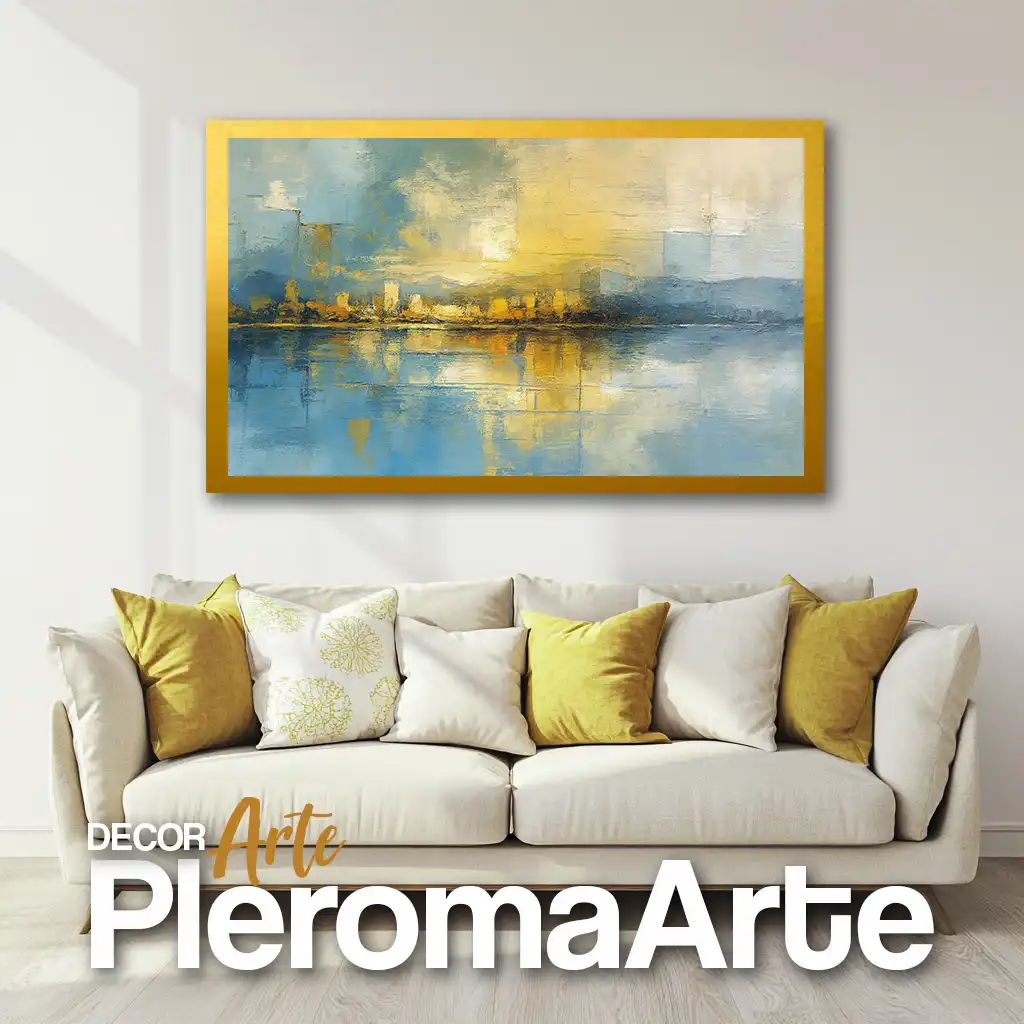 Venta de cuadros Paisaje Amarillo es una obra abstracta que captura la esencia de la luz reflejada sobre un horizonte urbano. La paleta fusiona amarillos dorados, azules intensos y toques de blanco que evocan un amanecer radiante sobre el agua. Sus reflejos y texturas generan profundidad y movimiento, transmitiendo energía positiva y serenidad. Este cuadro es perfecto para quienes buscan un arte contemporáneo que ilumine y transforme su sala, comedor u oficina con modernidad y sofisticación.